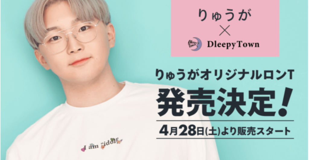 K-Popダンスカバーが人気の大学生YouTuberりゅうがとストリートファッションアイテムのサイト「DleepyTown」がコラボして、りゅうがのキャッチコピーである「I am “idol”」をプリントしたロゴTシャツが期間限定・数量限定で発売される。りゅうがは「服を作るのは叶えたい夢だった。感謝している。」とコメントを発表した。同時に、りゅうがセレクトのコレクションも発売開始する予定であり、アイテムは爽やかな韓国コーデに役立つアイテムの数々となっている。また、限定ロゴTシャツ購入者から抽選でサイン入りチェキ写真のプレゼントなども動画内で発表された。