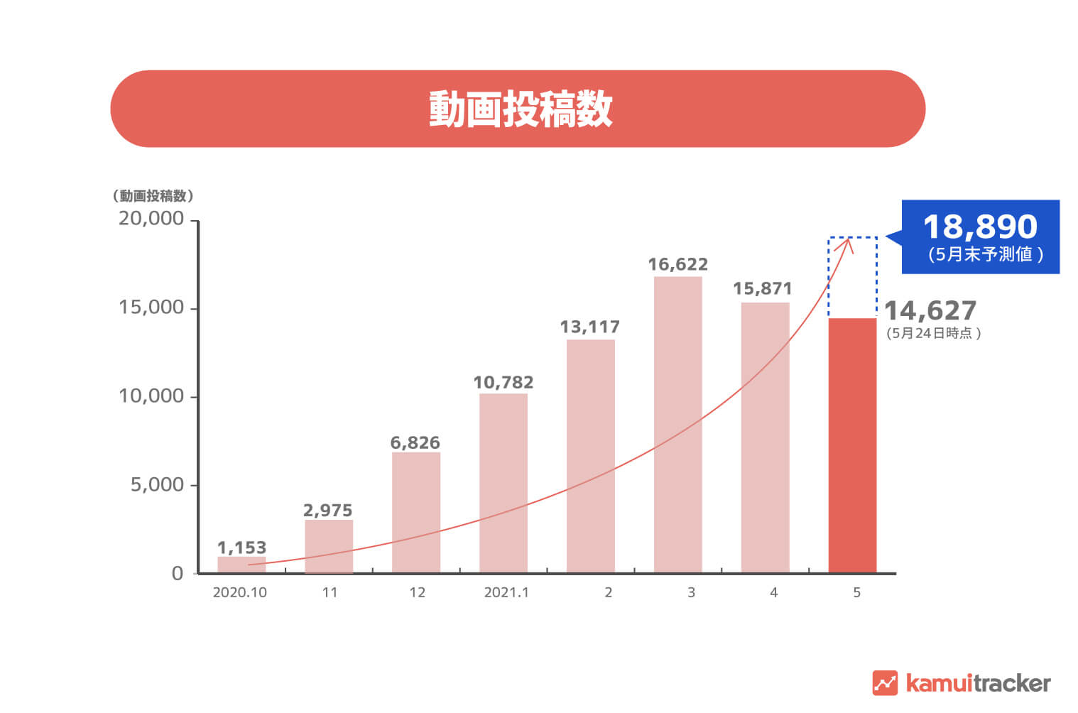 2021年1月頃からSNSで話題となり、多くのユーザーが参入し、今回の調査では、リリース以降の利用チャンネル数と動画投稿数が共に右肩上がりになっていることが分かった。