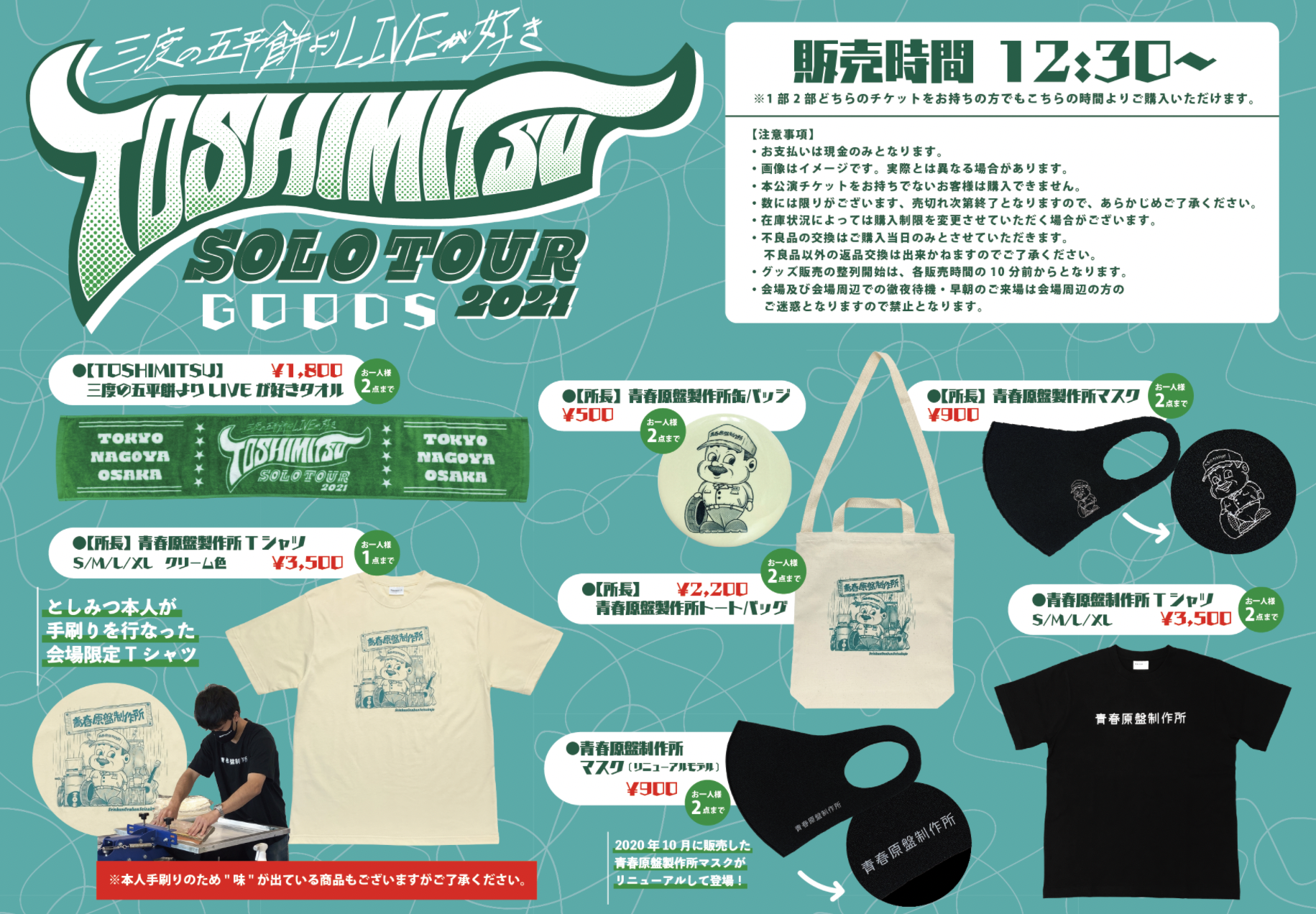 「TOSHIMITSU SOLO TOUR 2021 ~三度の五平餅よりLIVEが好き~」物販情報解禁