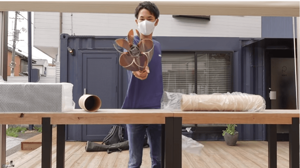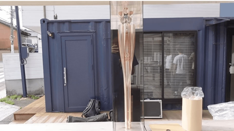 動画では、トーチに合わせて用意したガラスケースに聖火ランナーのトーチを入れ、自身がオーナーを務めるカフェ「R COFFEE STAND」に展示している。