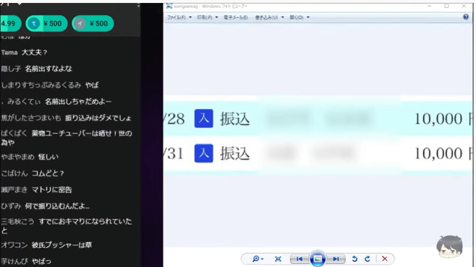 薬物の売人と付き合っている女性が薬物を届けに行ったところ、よききと数人のYouTuberがいたとのこと。薬物代の振り込み記録を添えてコレコレに告発していた。