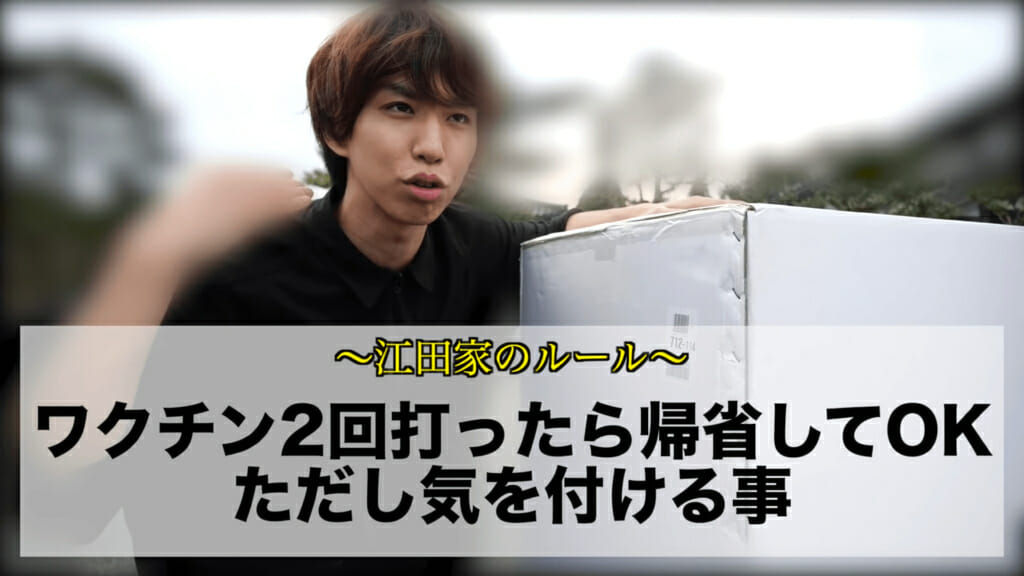 コロナワクチンの接種を2回受け終わっているなら帰省してOKというルールのはじめしゃちょーの実家。ワクチンを打ち終えたはじめしゃちょーは2年ぶりに富山県にある実家へ帰ることが出来た。帰省時に日頃の感謝を込めて母親へプレゼントを持参。梱包してある箱を見てはじめしゃちょーの母親は「中からエステティシャン出てこないよね?」と心配するも、プレゼントはエステサロンでも使われている本格的なエステマシンだった。