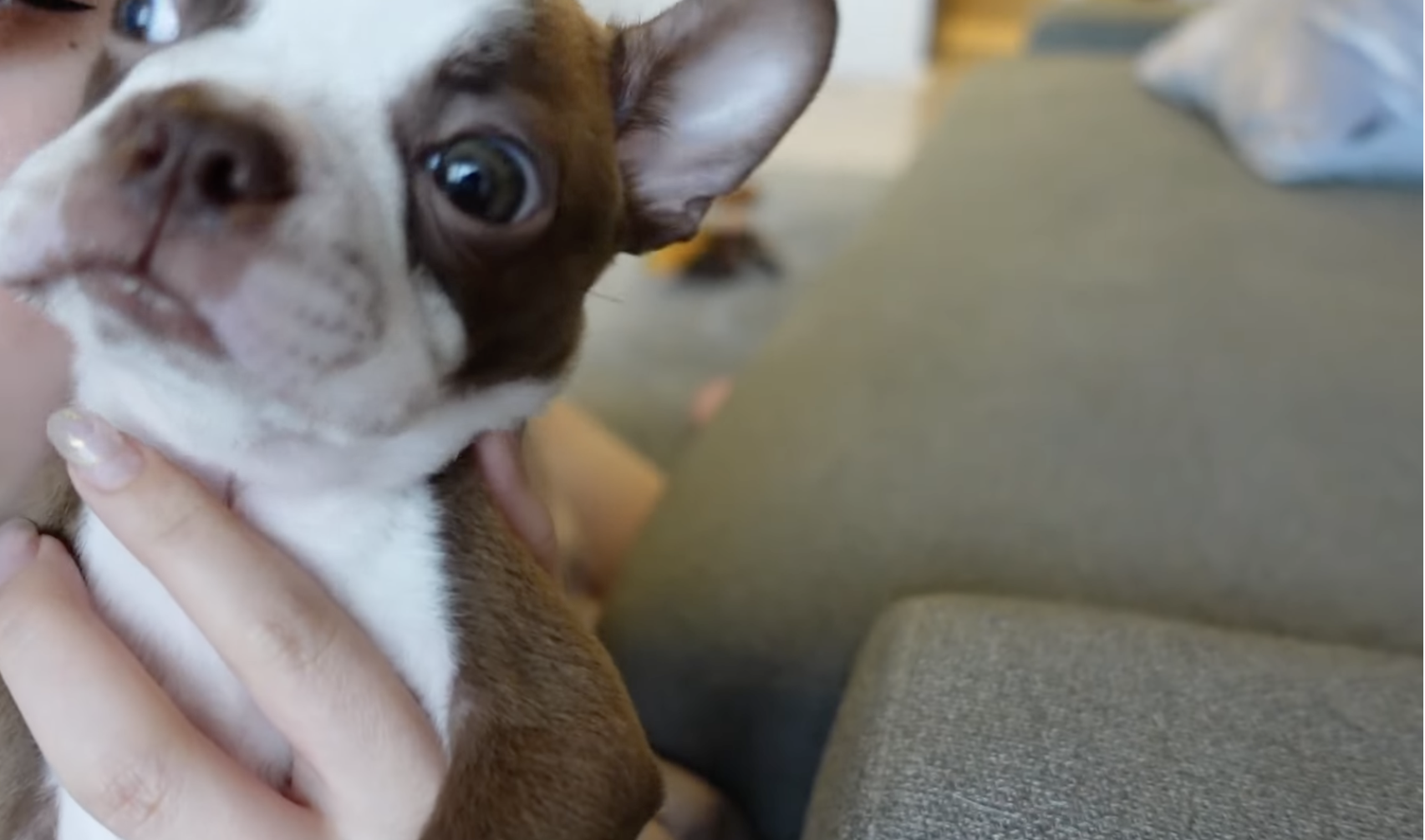 ビビはブブと色違いで、ブブはスタンダードなボストンカラーであることに対し、ビビはチョコレートアンドホワイトという毛色をしていて、目も少し色素が薄く、グレーがかっているそうだ。性格はとてもおてんばで、ブブがお兄さんとして面倒をみてあげているという。