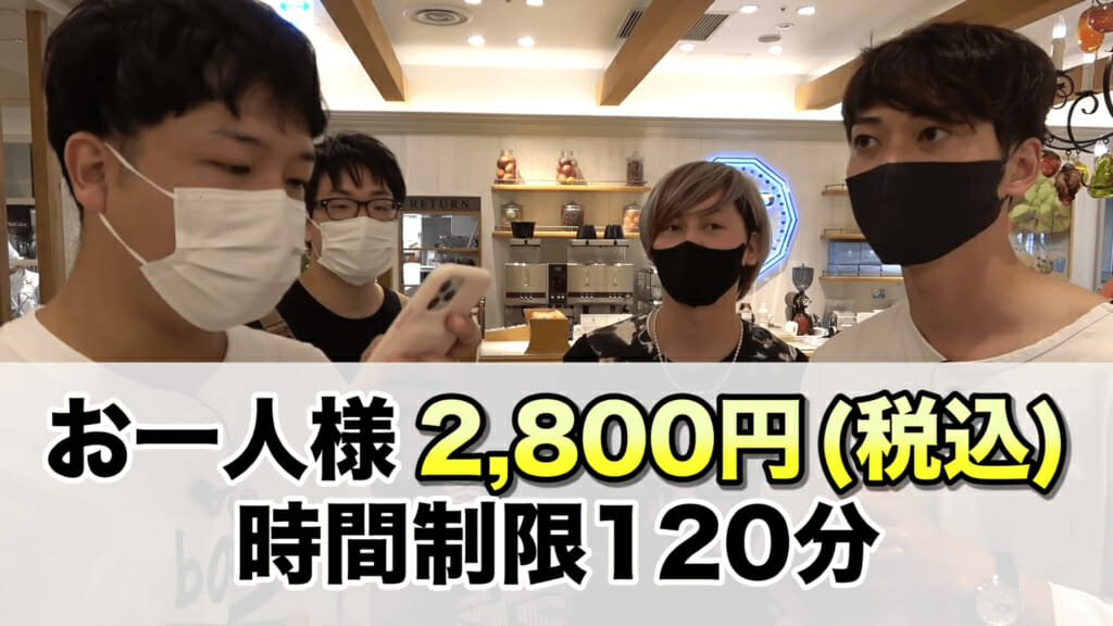 ないとーと渋谷ジャパン、タイガ、オックン、ケイケーの5人が今回訪れたのは、銀座にあるタルトアンドカフェのデリス。タルトは手作りで、季節によって異なっていると説明。また時間は120分で金額は2800円、タルトの他にサラダやドリンクも食べ飲み放題でなっている。