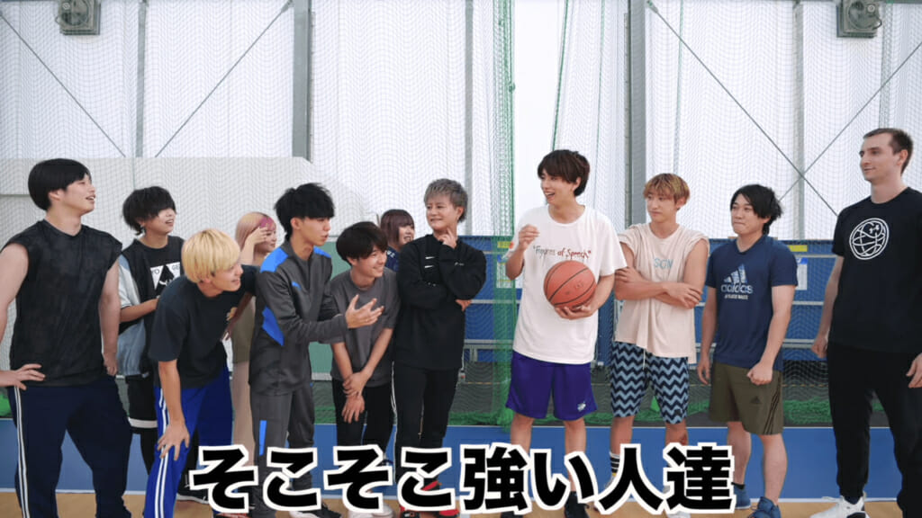 フォーエイトといえば4と8だからと、4人対8人でのバスケ対決をする事にしたはじめしゃちょー。また人数差があるからとバスケ経験者の、水溜りボンドのカンタとサワヤンゲームのサワ、レイクレのともやんがメンバーとして参加。メンバーを見たフォーエイトは「そこそこ強い奴って言ってたのめちゃ強いじゃないですか」と驚いていた。