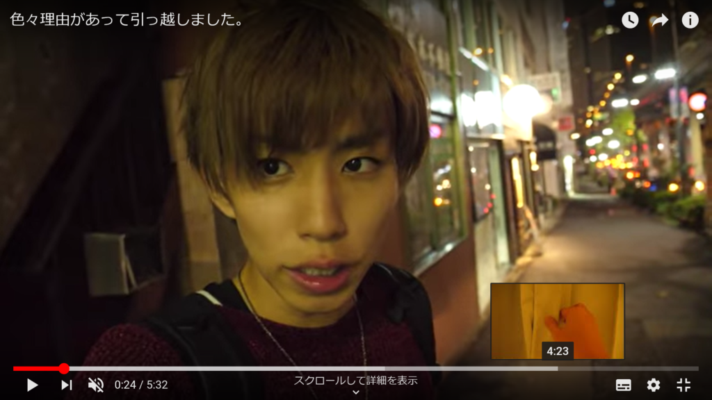 動画内では新住居に行く道をカメラで撮っている。さすがに家の近くはモザイクが掛かっているが、分かる人にはわかるだろう。前の動画でストーカーじみたおじさんの影響で顔は少し浮かない様子。移動後は引っ越した理由や新住居の部屋紹介を撮影している。最後には前の住居みたいに追い出されないように気を付ける宣言も行った。