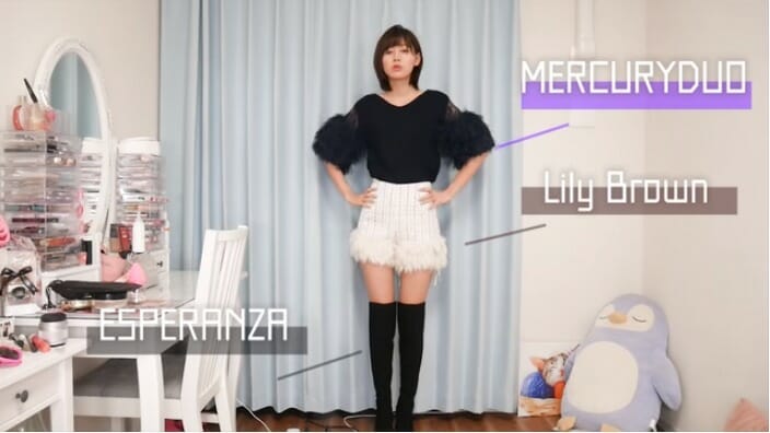 こちらはLily Brownのショートパンツ・MERCURYDUOのニット・ESPERANZAのニーハイブーツを合わせたコーディネート。