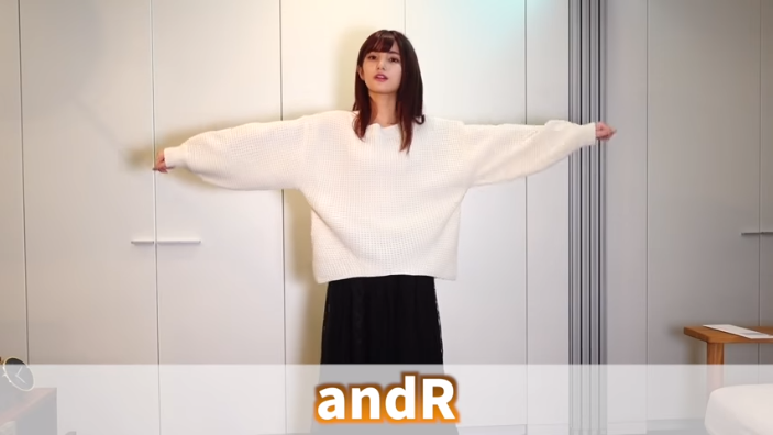 お次はandRのニットを使った秋冬コーデ。袖部分が広め&ニットの網目が荒いのが特徴で、ちょっとオトナっぽいイメージのアイテムをセレクトしたという。