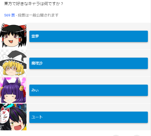 そのため、東方の好きなキャラクターランキングもこのようにたくっちのオリジナルキャラクターが入ってきてしまっているという事態に東方ファンは激怒。