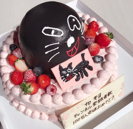 誕生日ケーキ・・・ではなく、登録者100万人突破のお祝いケーキ(出典:Instagram.com)