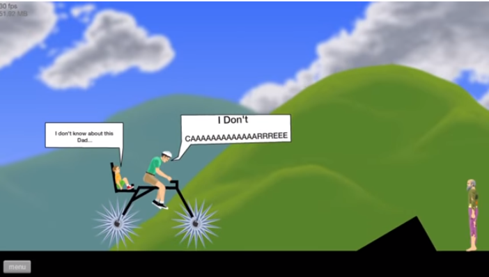 次は2016年12月11日に公開された「今日からここに住もう!(屋根がだんだん下がってきます) – Happy Wheels 実況プレイ」だ。