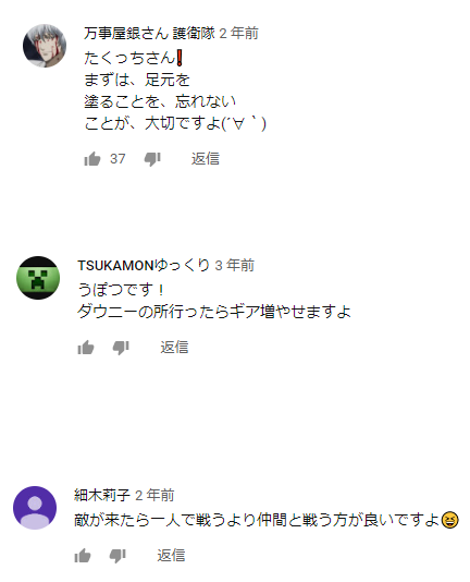 そのため、序盤・中盤で行き詰まった方、オンラインでうまく立ち回れない方は動画と一緒にチラッとコメント欄を覗いてみることもおすすめだ。