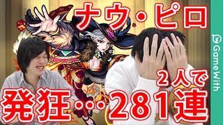 最初はしろが引くことになった。10連目で早速☆5のキャラを4体引いたしろにワルプルギスへの期待がかかった。「幸先やばくないっすか?」とこの結果にしろも驚愕。この結果に対する「むかついたわ…。」というナウ・ピロ(ナウ)のコメントに、「むかつく要素ないでしょ!」と突っ込んだしろ。