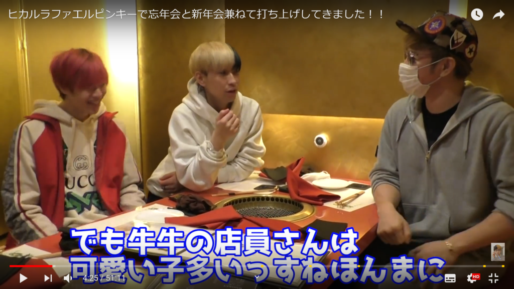 2019年1月3日に人気ユーチューバーのひかるが「ヒカルラファエルピンキーで忘年会と新年会兼ねて打ち上げしてきました!!」という動画を公開し、仲良しすぎと話題になっている。