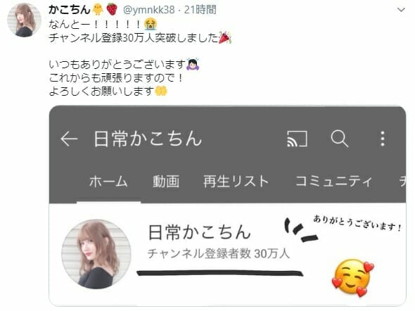 かこちん 登録者数30万人突破!「いつもありがとう!」