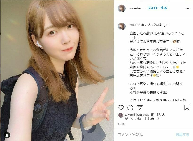 もえりん 2か月ぶりの動画で登録者数100万人を目指すと宣言「本気でYouTubeに取り組んでいく」