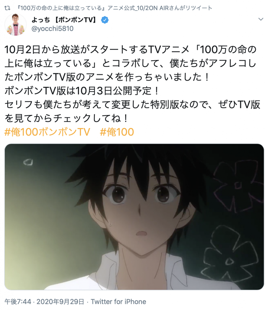 ボンボンTV アニメ「100万の命の上に俺は立っている」とコラボ!アフレコ版アニメが公開予定