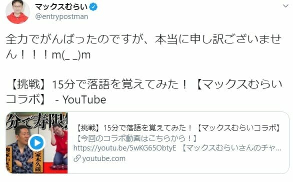 林家木久蔵 マックスむらいとコラボ!落語「じゅげむ」を披露