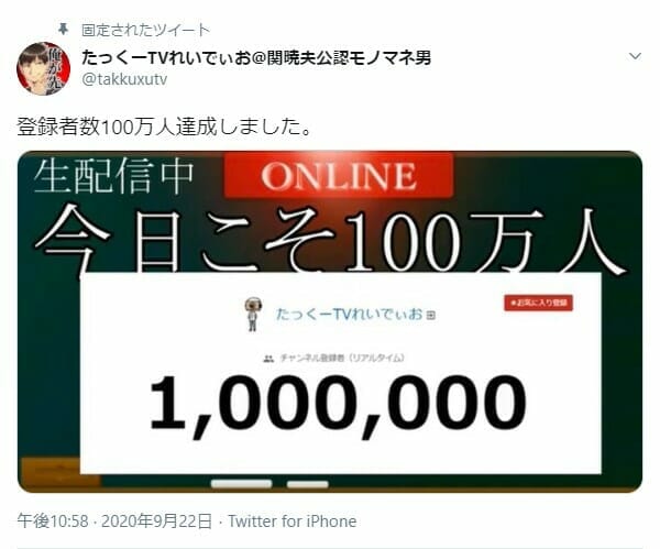 たっくーTV 念願のYouTube100万登録突破!お祝い続々