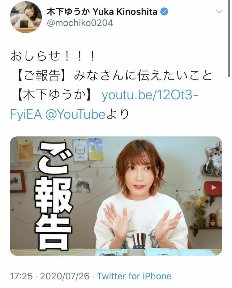 木下ゆうか 駆け出しYouTuberとの交際を発表!カップルチャンネルも開設