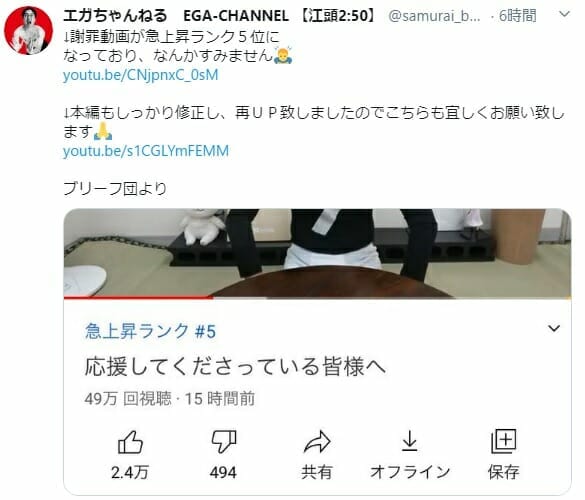 エガちゃん 全世界に下半身が流出「ち〇こ麻痺」
