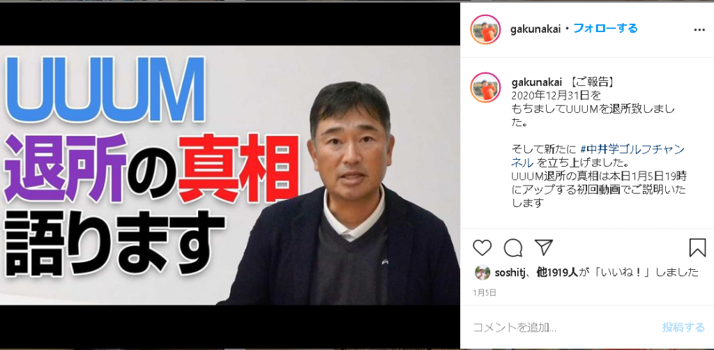 プロゴルファー中井学がUUUMを告発 名指しのプレスリリースにも屈せず