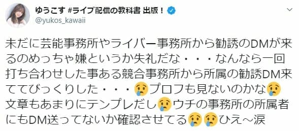 ゆうこす 事務所勧誘DMに苦言「プロフも見ないのかな」
