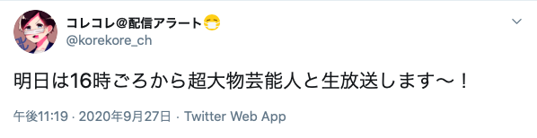 コレコレ 「超大物芸能人」と生放送 ファンの予想は「宮迫?」「手越かな」