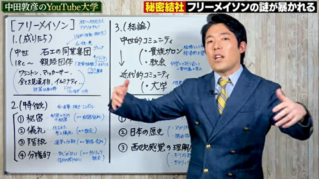 中田敦彦のYouTube大学が秘密結社フリーメーソンの謎に迫る