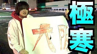 大きな模造紙に、大きく「大阪」の2文字を書いていざヒッチハイクスタート!