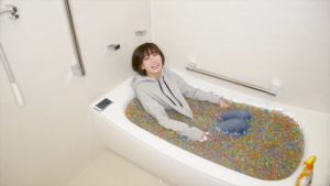 ゆきりぬ「さっそく入ってみます!」とぷよぷよボールのお風呂にダイブ!