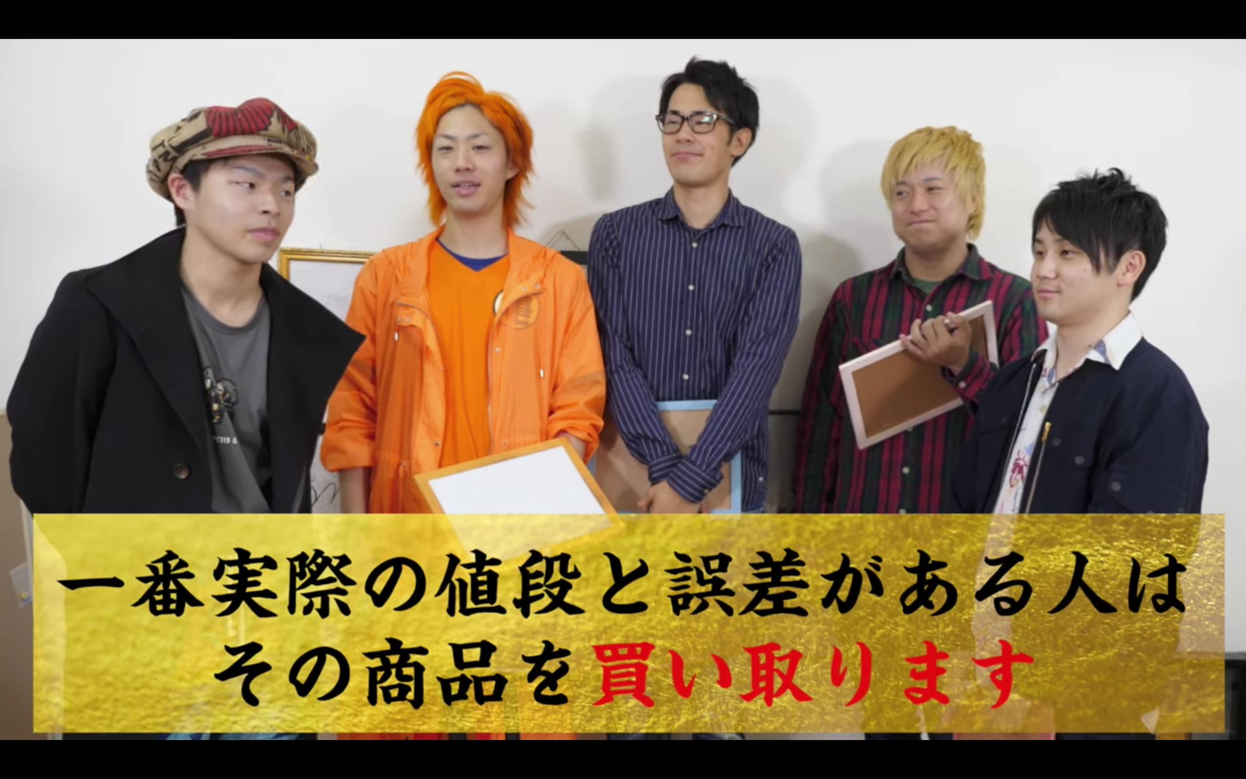 東海オンエアのメンバーが、としみつが買ってきたモノの値段を当て、一番値段が遠かった人が、そのモノを買い取るという企画。