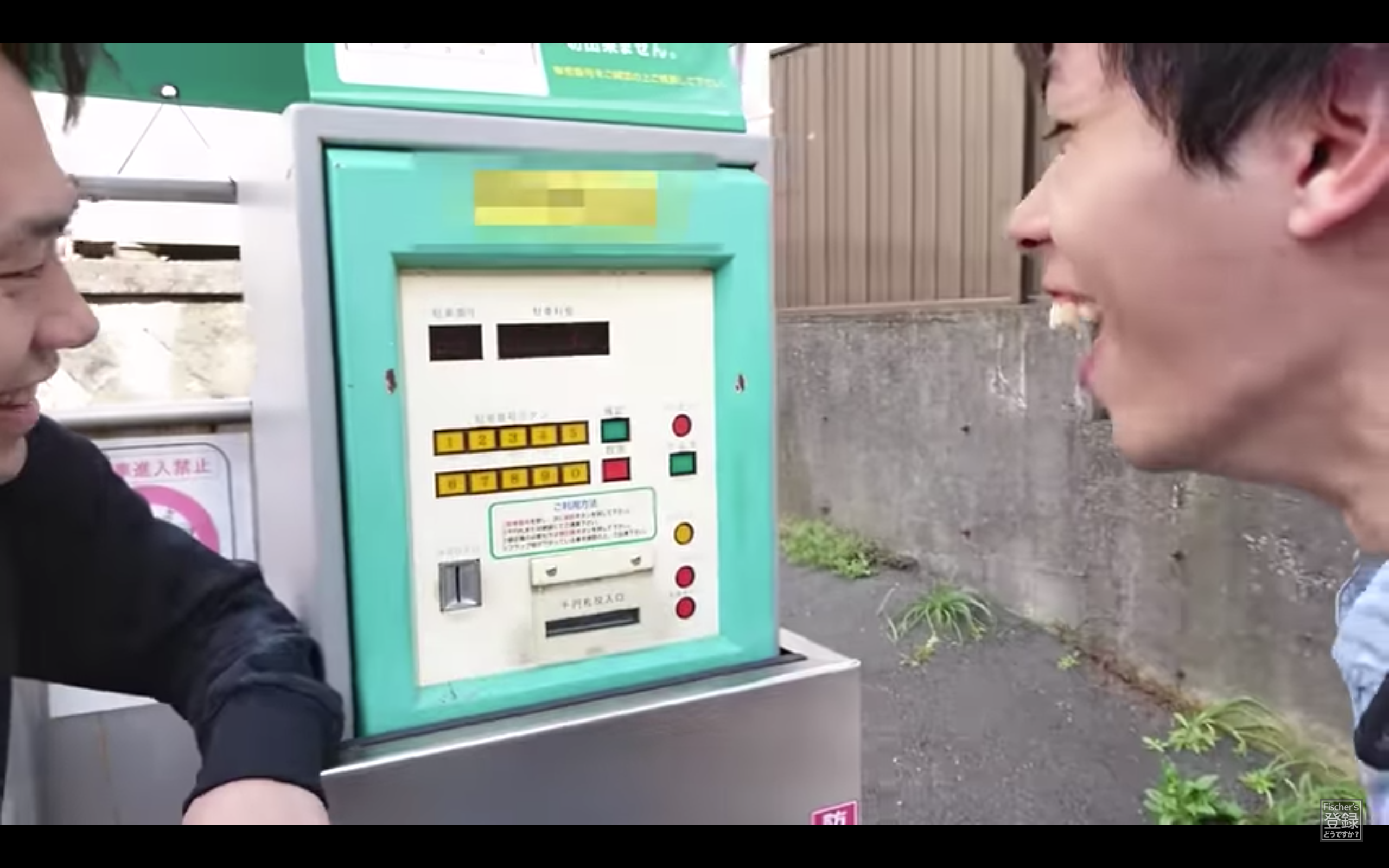 駐車料金を払おうとするマサイは、表示される駐車料金がよくわからずに戸惑ってしまい、シルクロードとモトキと駐車料金を当てようとする。