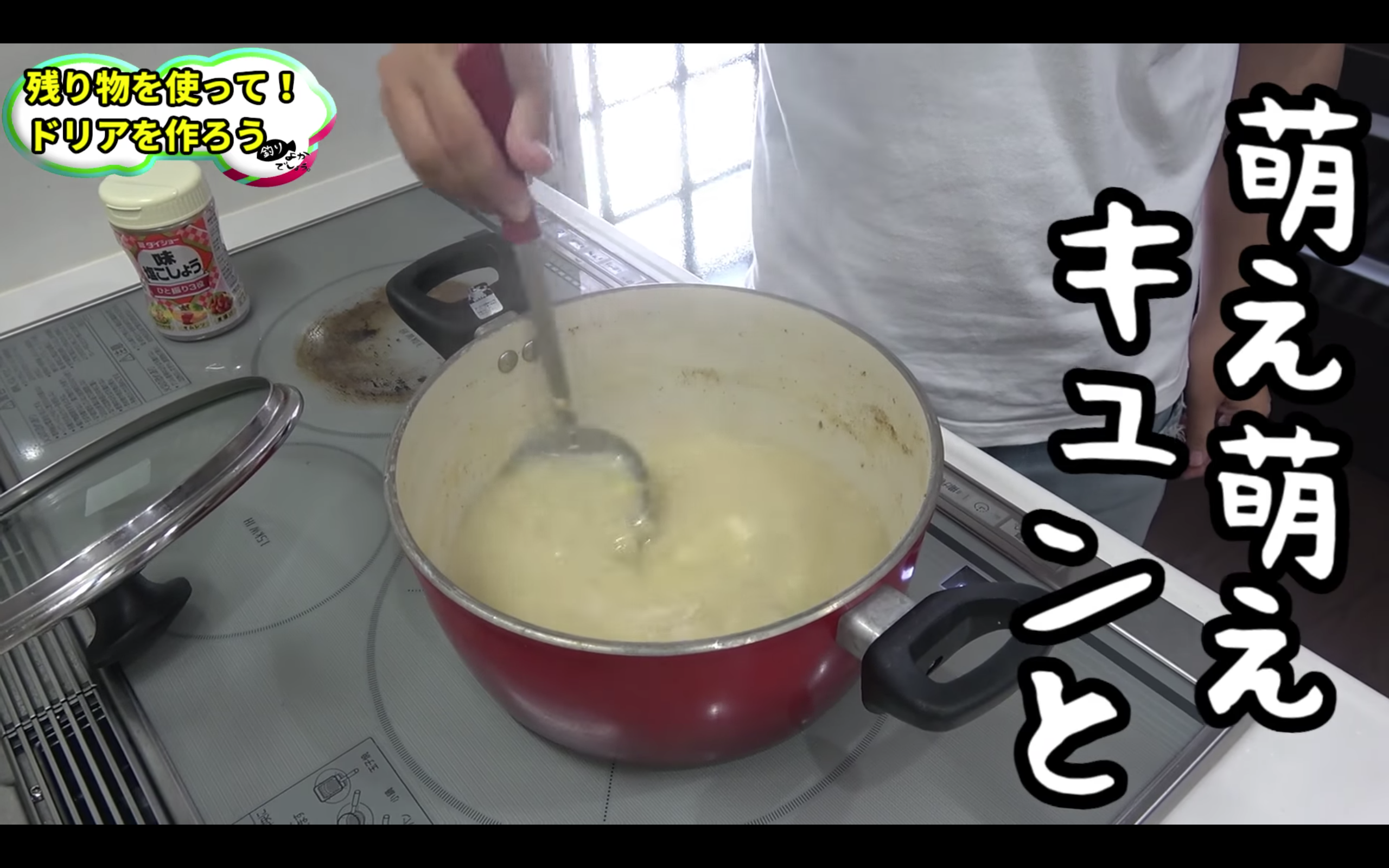 はたととくちゃんは、先日作ったシチューやラクレットチーズを使って、ドリアを作ることに。