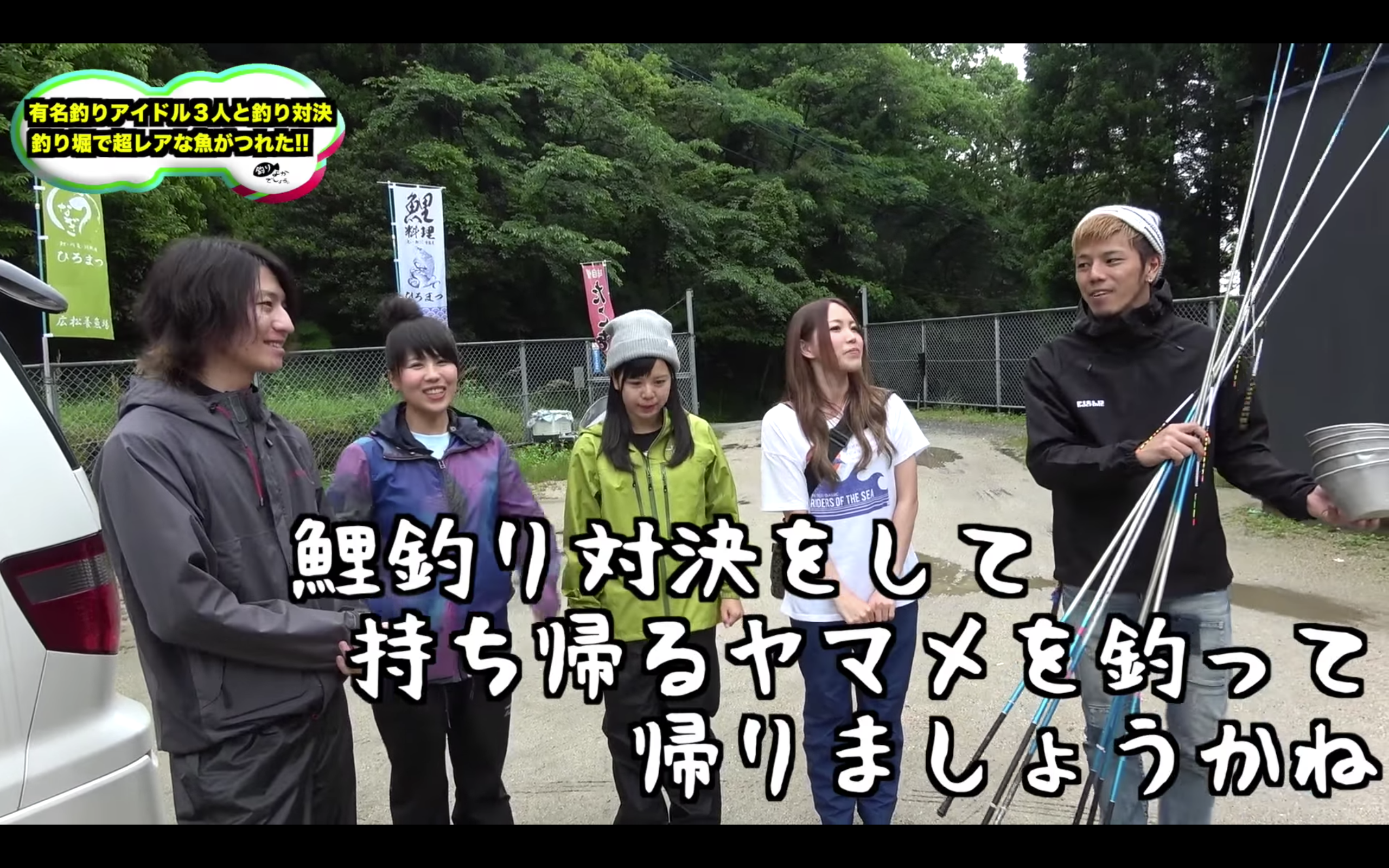釣りよかでしょうは、釣りアイドルのそらなさゆり、鈴原ありさ、冨士木耶奈と共に、管理釣り場で鯉を釣り、誰が1番多く釣ることができるのかを競い合った。