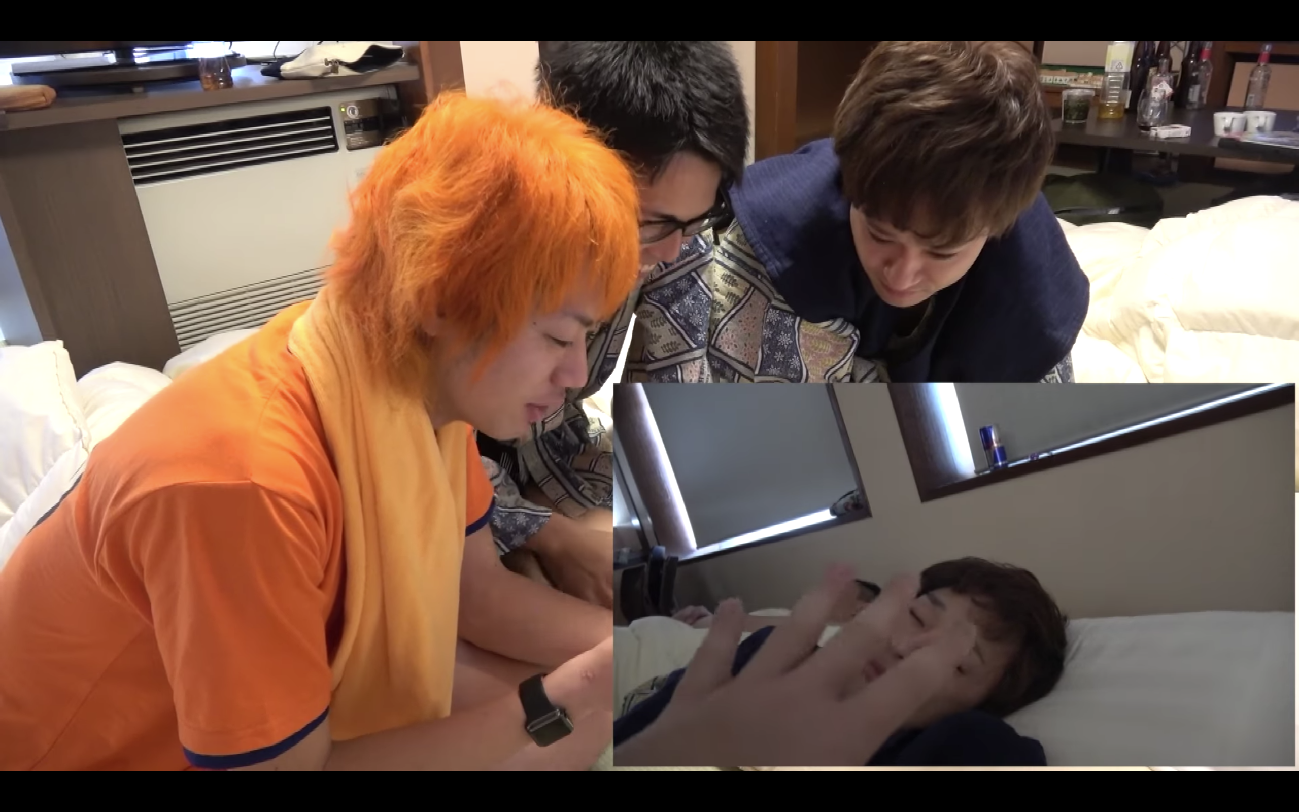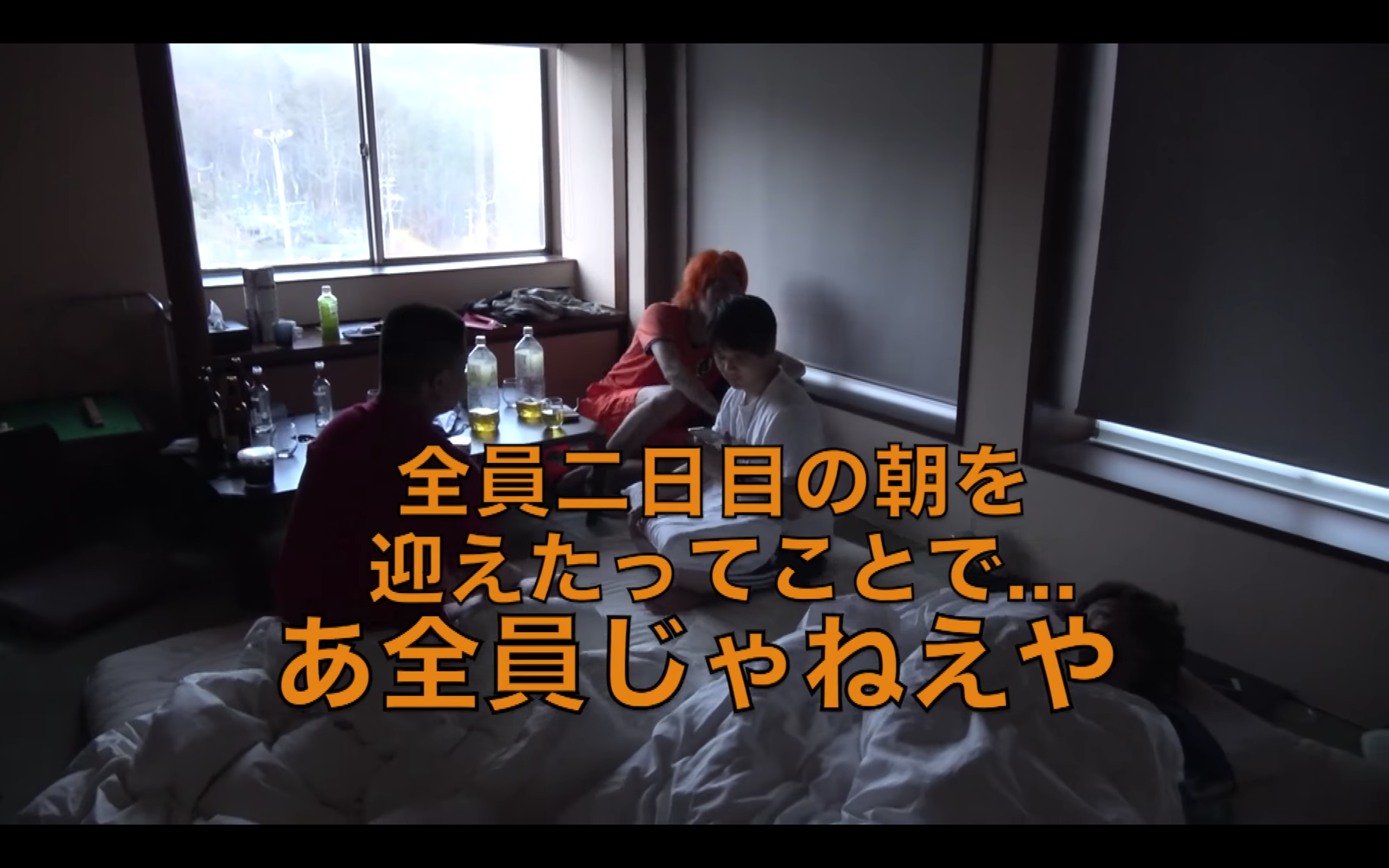 としみつ、てつや、りょう、ゆめまる、虫眼鏡は、2泊3日の旅行をして、寝たら即帰宅という過酷な企画を行っている第四弾の動画。てつや、りょう、虫眼鏡は元気な様子。しかし、としみつとゆめまるは、眠気の限界を迎えているものの、何とか耐えているが・・・。