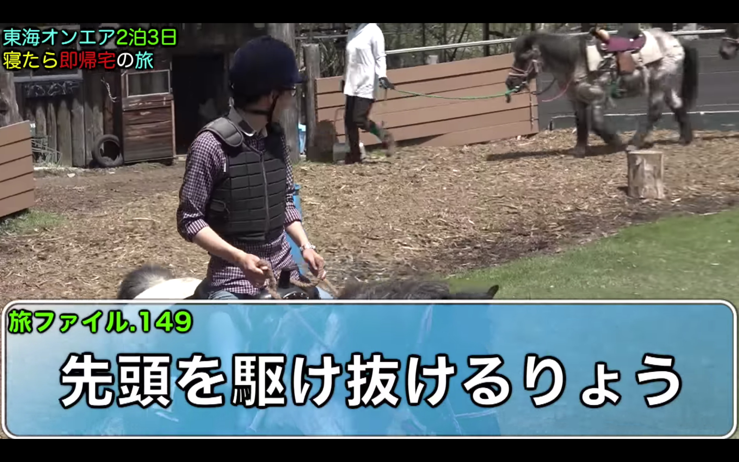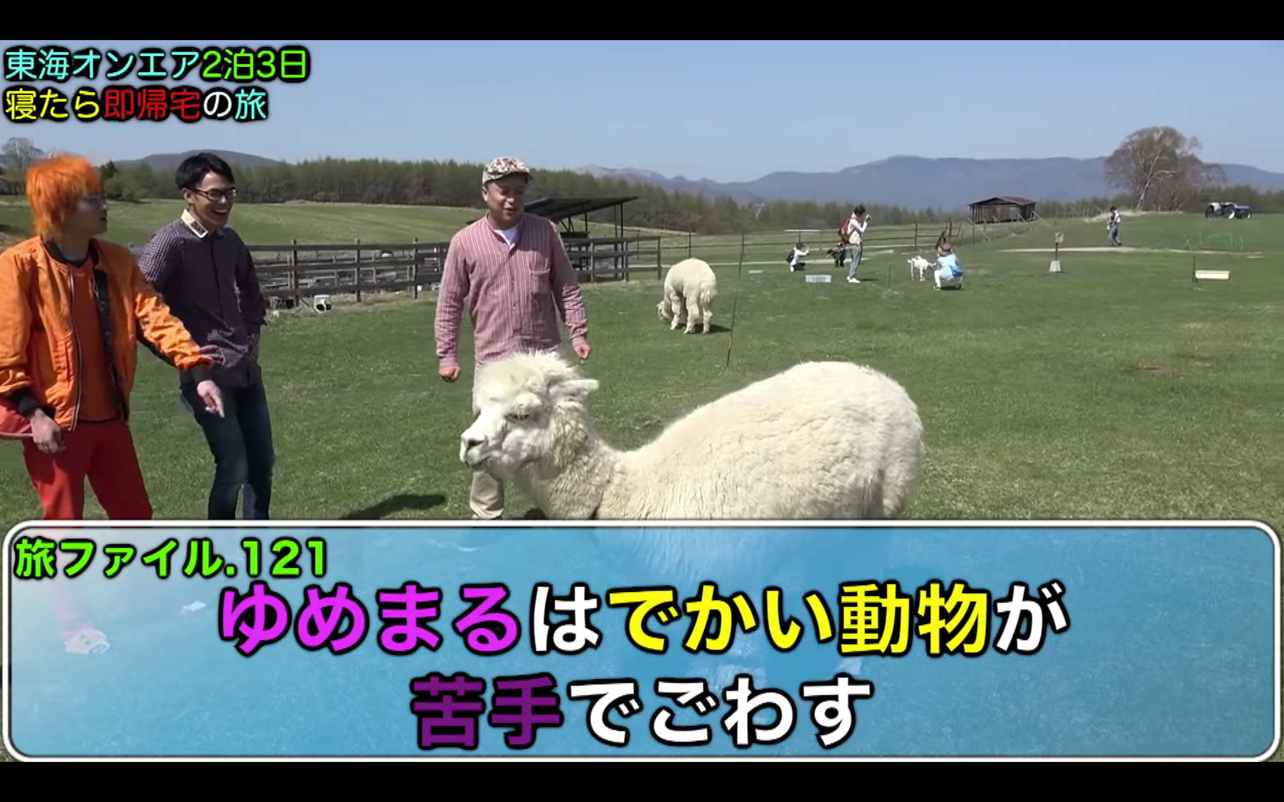 りょう、てつや、ゆめまる、虫眼鏡は、2泊3日の寝たら即帰宅の旅の2日目。牧場にやって来たメンバーは、アルパカや牛と戯れる。ゆめまるは「デカい動物が苦手でごわす」と怯えていた。その後てつやとりょうは、乗馬をして牧場を満喫していた。
