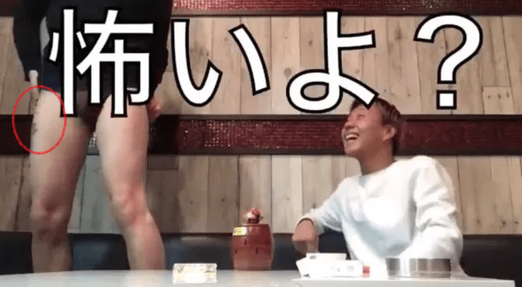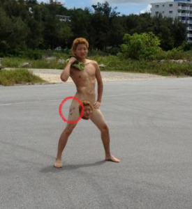 やはりこちらの画像でもどのような模様なのかについてはっきりと確認ができないが、社長の右太もも側面にはなにかタトゥーが彫られているのだ。