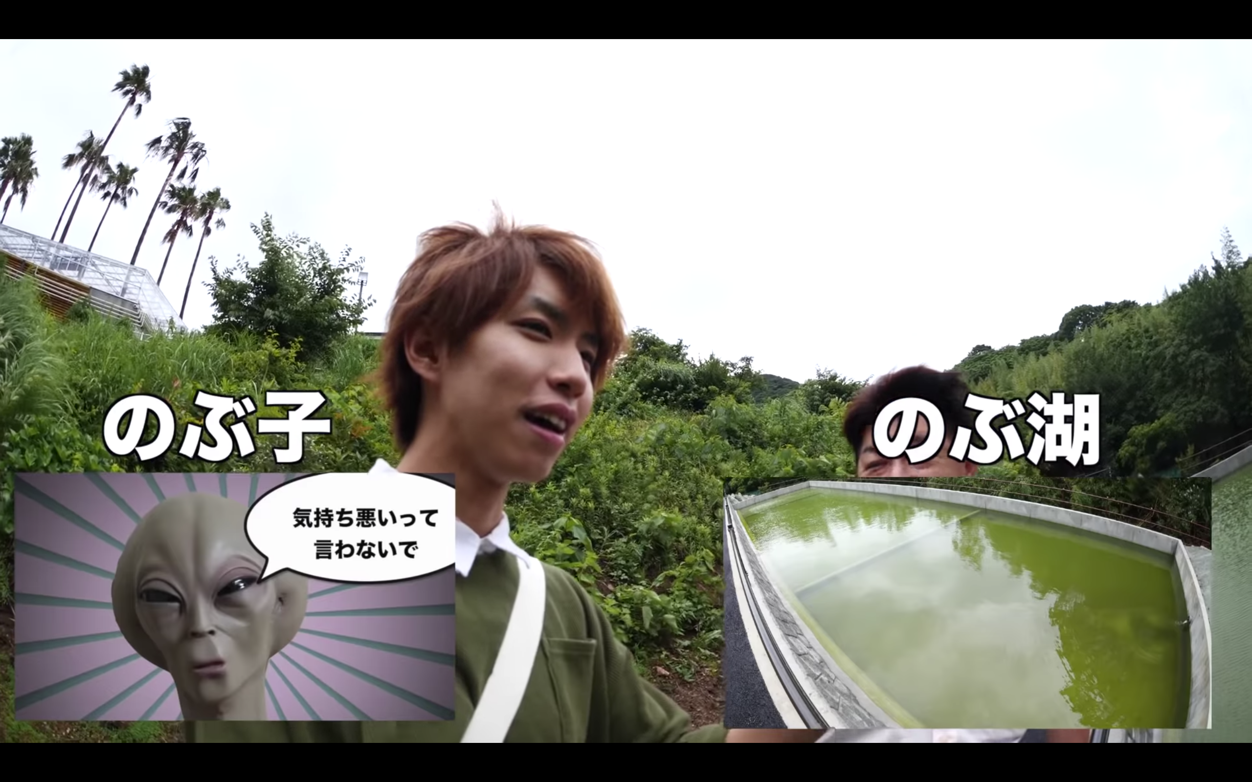 100万円企画で、動物園の外来種亀の池作りを支援したはじめしゃちょー。この池が遂に完成したので、池の名前を付けるために動物園にやって来た。はじめしゃちょーは名前を決めて来たようで、名前ははじめしゃちょーの家にいる「のぶ子」というエイリアンからとって、「のぶ湖」となった。この「のぶ湖」に「のぶ子」を置くためにベンチを設置。はじめしゃちょーや園長は、池で水遊びをしながら「のぶ子」をベンチに座らせる。