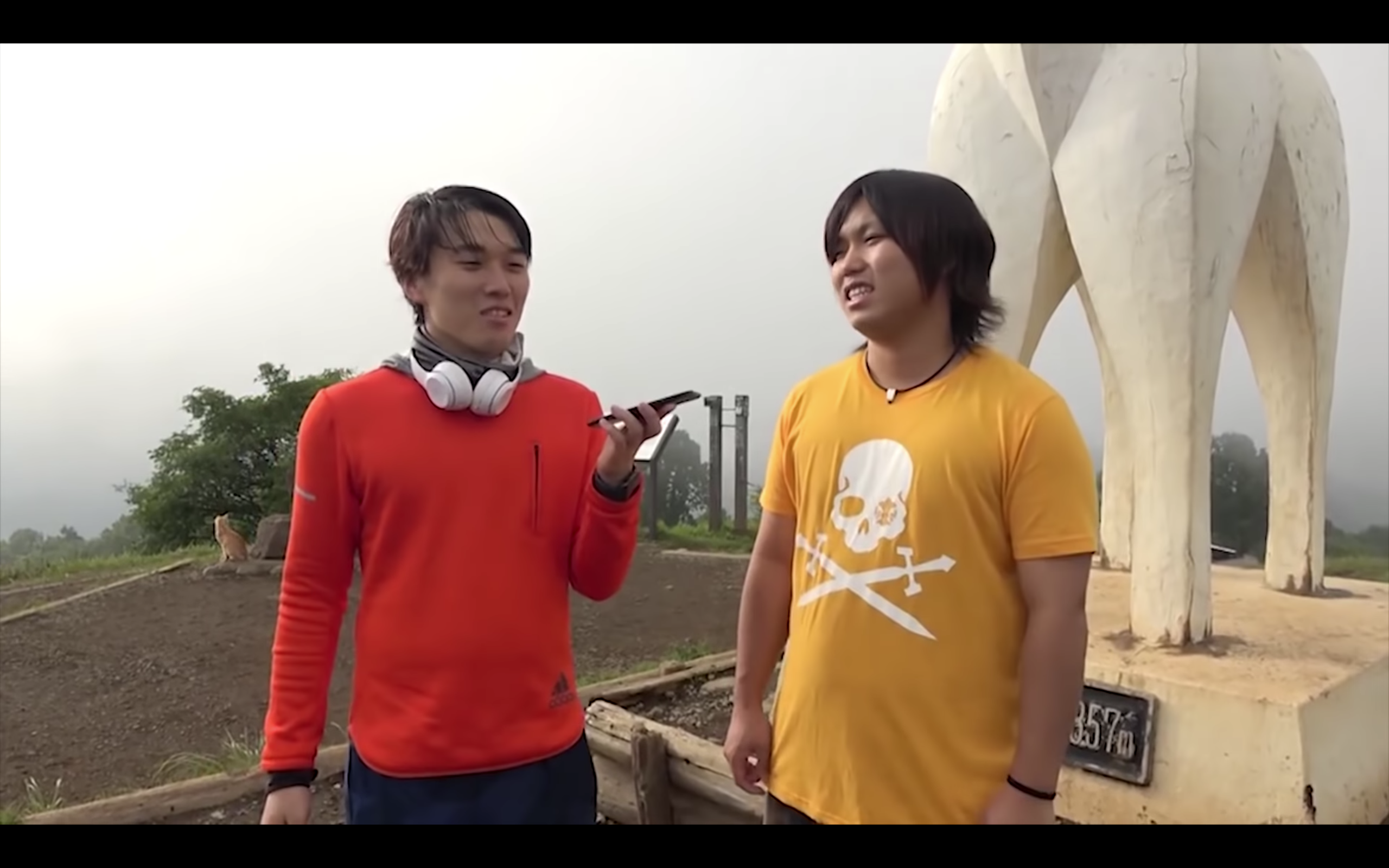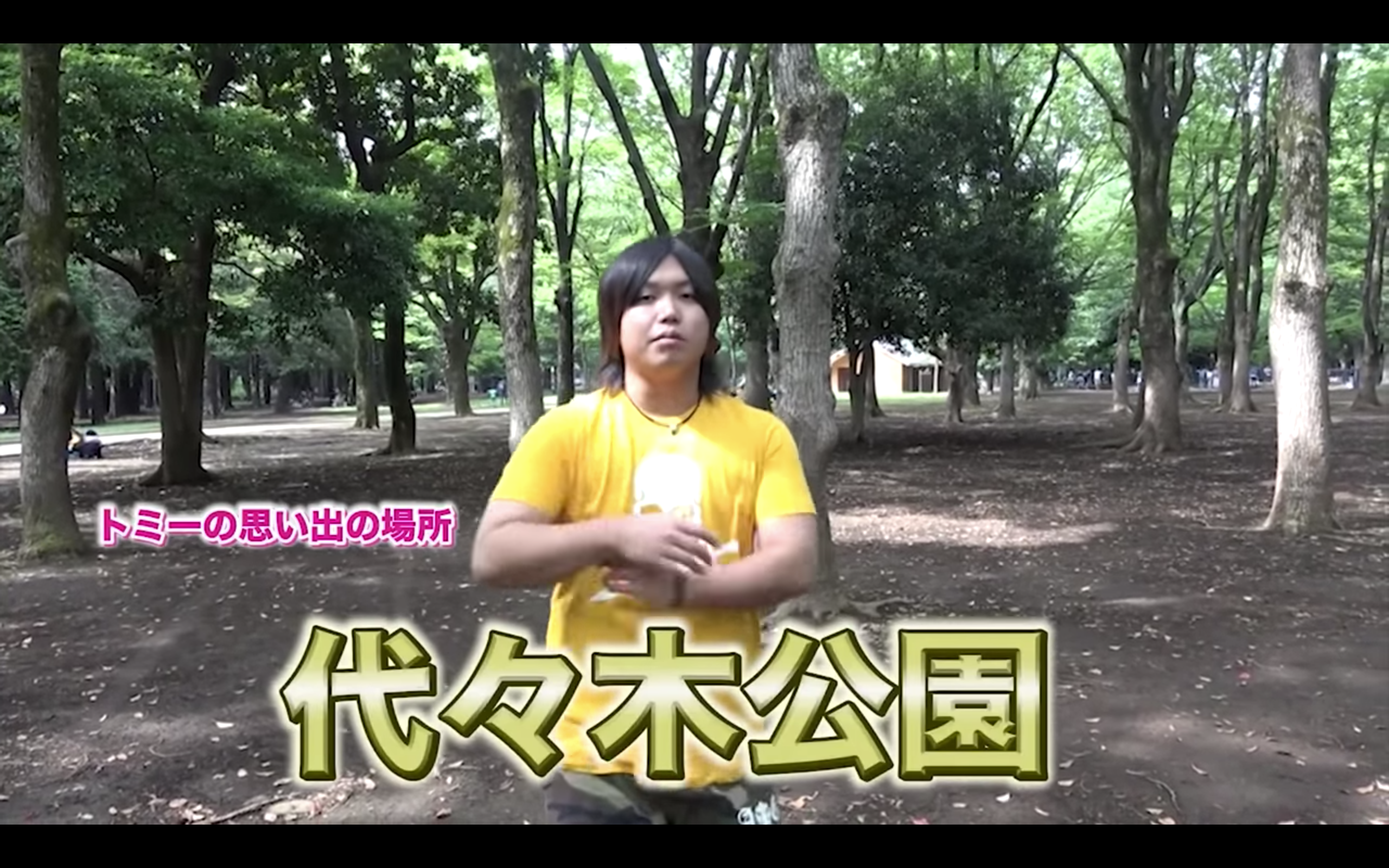 今回の動画のもう1つの企画は、思い出の場所で「妖怪ウォッチワールド」を使って妖怪を捕まえること。しかし、陣馬山には電波がなく、断念して代々木公園で妖怪を捕まえる水溜りボンドであった。