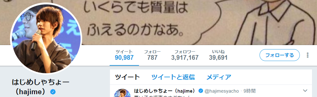 続いて、はじめしゃちょーのTwitterはこちら↓
