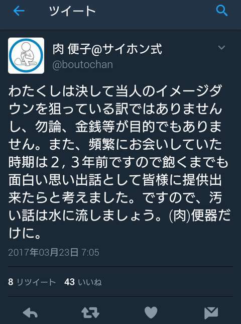 更に、この暴露の4年後である2017年に「共通の知り合いを通じて知り合った」という「肉 便子」と名乗るヒカキンのセフレ(?)が彼のの女癖について暴露。