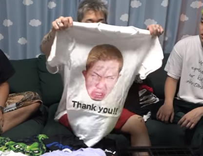 ジン「これね」(そらちぃの顔がプリントされているTシャツを見せる)