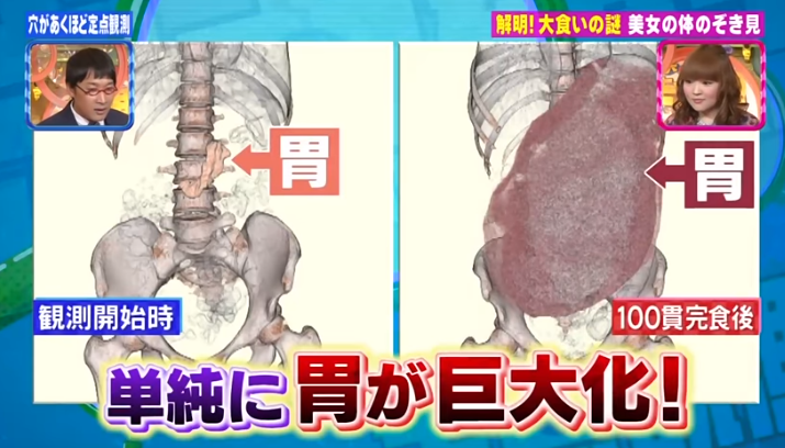 どうやら「食べても満腹にならない」というのは、普通の何倍も胃が膨らむから、という大変シンプルな理由だそうなのだ。
