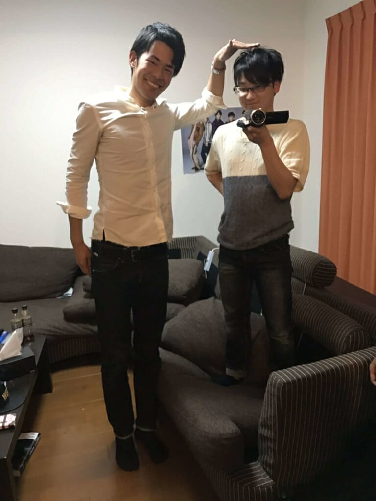 因みに、東海オンエアで一番の高身長(185㎝)であるりょうと虫眼鏡が並ぶと、親子ほどの身長差が・・・
