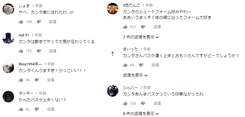 早朝シューティング部とコラボした2on2の動画ではカンタのプレイに驚いた視聴者が多く「カンタバスケうますぎ!」といった称賛の声が大量に寄せられることとなった。