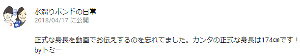 その後も動画概要欄に「174㎝です」などの虚偽の申告をしているが、現在もカンタの身長は変わらず167㎝のままである。