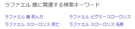 そんなこともあり、2匹は死んでしまったのではという噂が浮上し、ラファエルの猿について検索すると「死んだ」というワードが候補に上がるようになってしまった。