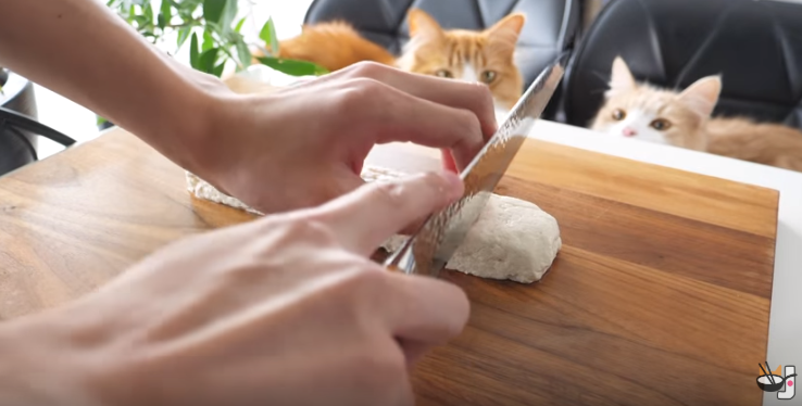 包丁はもちろん100円ショップの安物ではなく、世界最高峰のナイフ職人であるボブクレーマーが手がける高級包丁(5万円)を使用。