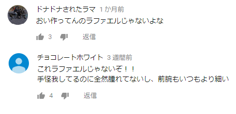 現在も、ラファエルクッキングの動画に対して「料理をしているのはラファエルではない」と見た目などから指摘をする声は多い。